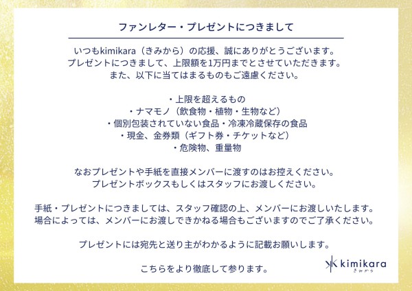「kimikara メンバー名」宛
